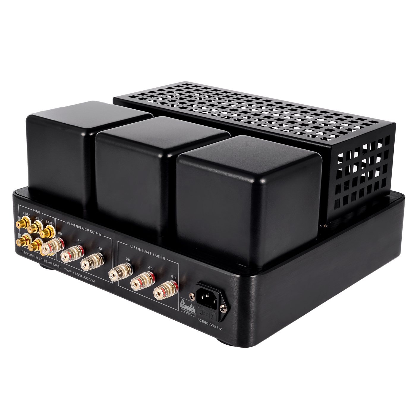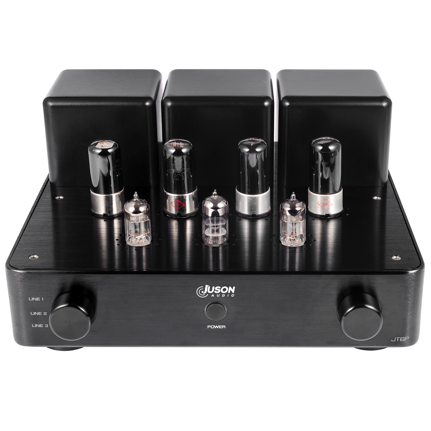 Class A push pull tube amplifier Input:LINE1/LINE2/LINE3 Power output:9 Watts RMS x 2 into 8 ohms THD(1KHz):≤1% @0dB/1Khz Output Impedence:4-8 Ω Input Impedance:100 kΩ Input Sensitivity:560mV S/N:84±0.5dB Frequency Response:35Hz-25KHz (-3dB) Vacuum tubes:6N3x1;6N1x2;6P6Px4 Power consumption: 150W Dimension:340mmx295mmx170mm Product weight:11KG